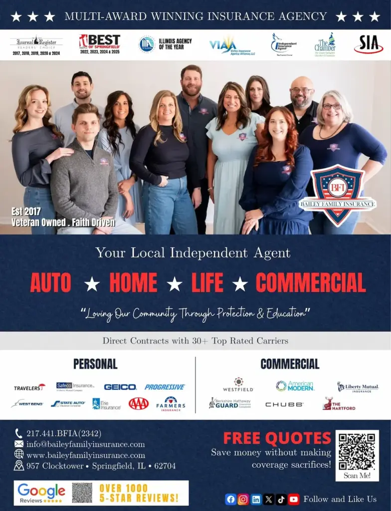 We’re a local, family & Veteran owned Independent Insurance Agency with direct contracts with over 30+ carriers to find the right coverage at the best price to suit your unique insurance needs.